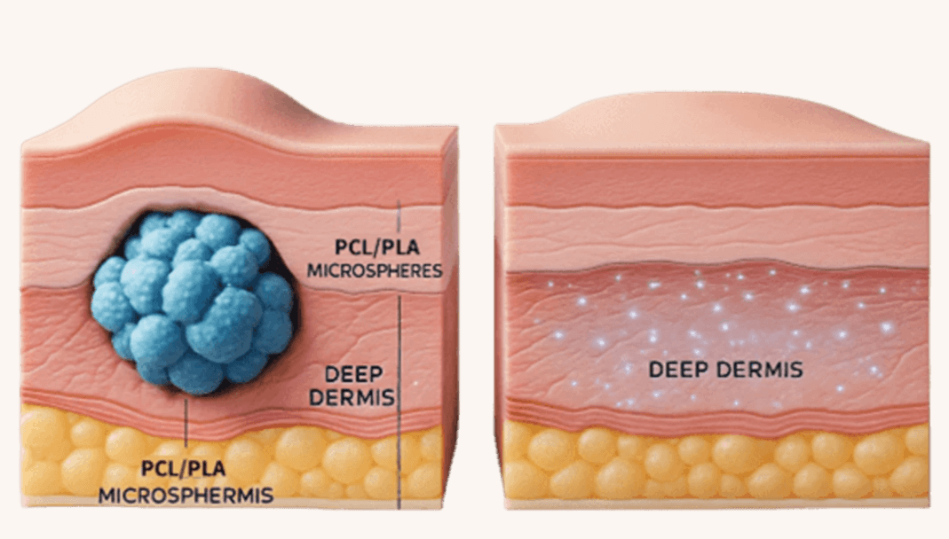 材料不依賴化學交聯劑,不同於被動式填充設計,本產品而是主動地融入肌膚環境,降低刺激與異物感,提供溫和、舒適的使用體驗,為後續誘導「自體膠原新生」