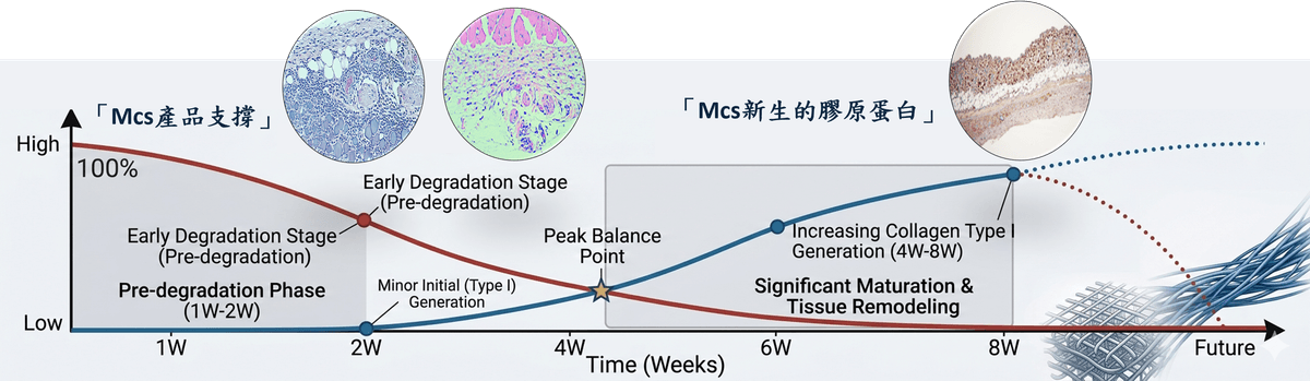 動物實驗顯示具有再生潛力,支持設計理念與膠原再生概念,臨床驗證尚在規劃中........