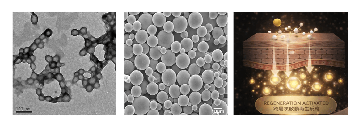 此智能材料合成平台,為微球製備技術、奈米球經皮穿透技術,以及奈米液化與精準遞送技術提供核心材料基礎,建立從材料設計到臨床應用的垂直整合技術體系。平台同步考量法規與產品化需求,避免使用高風險交聯劑,並可精準控制物性與不純物殘留,支援從概念驗證(POC)到醫療級產品開發的完整路徑