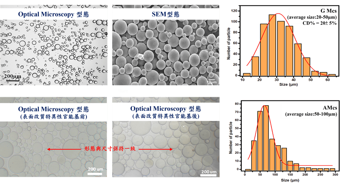 - 粒徑可控:可依產品需求調整尺寸,分布窄,批次穩定